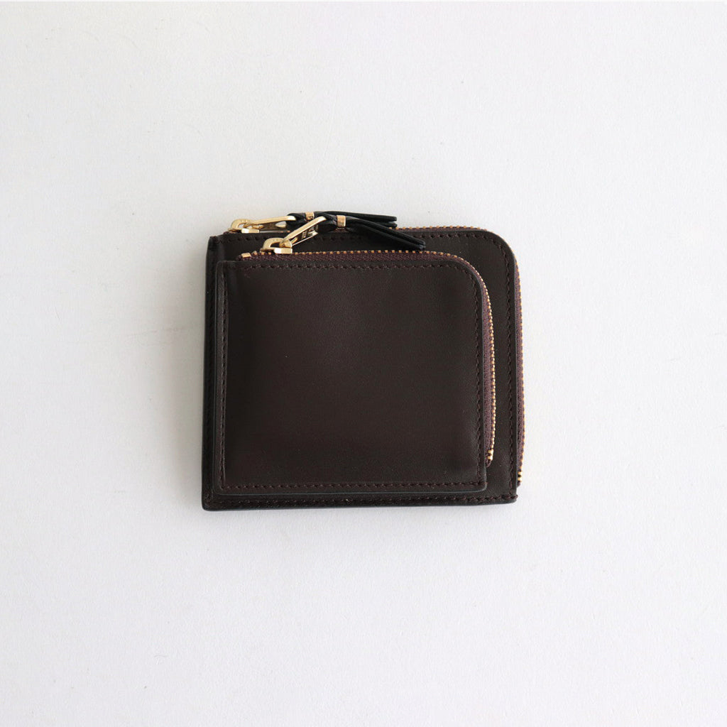 メインとなる財布の外側に小さなポケットが付属しており、単に容量が増えるだけでなく、お札、小銭、カードなどをシーンに合わせて収納することができる使い勝手の良い仕様です。財布の内側にCOMME des GARCONSの箔押し入り。オリジナルパッケージのBOXが付属。