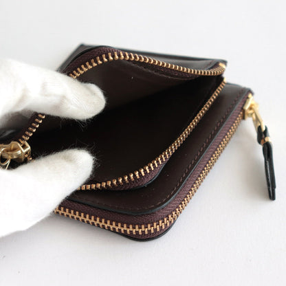フラットな表面感で上品な雰囲気のカウハイドを使用。程良く柔らかさもありながらコシと厚みがあり、耐久性に優れたレザーです。容量は小銭入れが1箇所、ポケットが2箇所となります。
