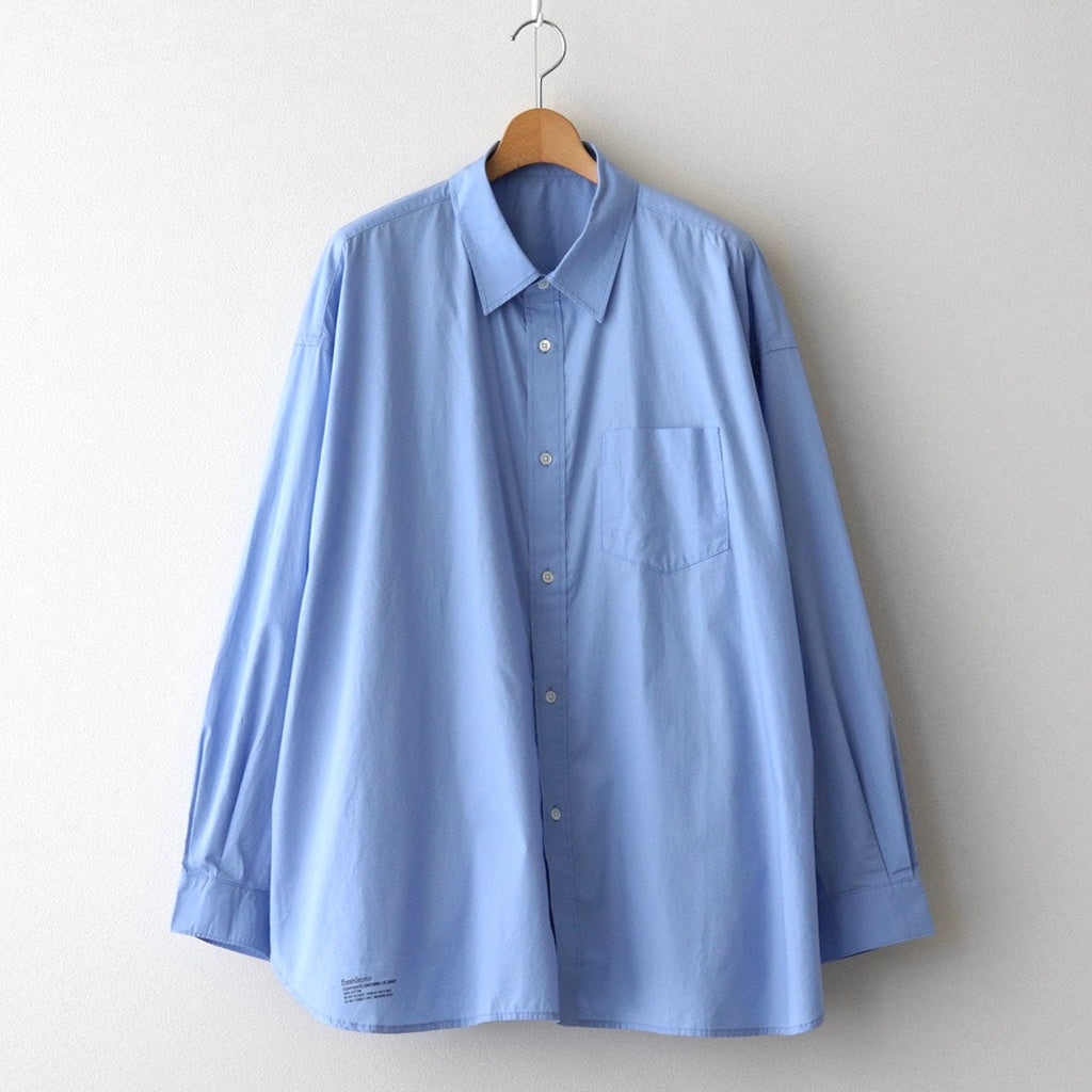 ゆったりとしたシルエットのレギュラーカラーシャツ。シンプルなデザインながら身頃のサイド部分にはFreshServiceらしい大容量のポケットを内蔵。右裾にケアタグを模したFreshServiceのネームプリント入り。