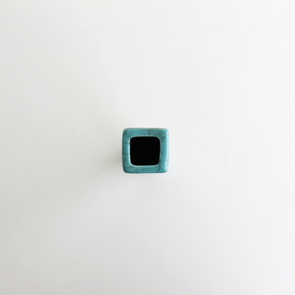 白や黒、ターコイズを基調としたコンテンポラリーなうつわを製作する苫米地正樹氏。インディアンジュエリーに影響を受ける氏の作品は、釉薬と土の収縮率の違いにより生まれるひび割れに墨を流しこむ「貫入(かんにゅう)」という技法が特徴的。トルコ石に見られる「スパイダーウェブ」の様な模様を表現しています。