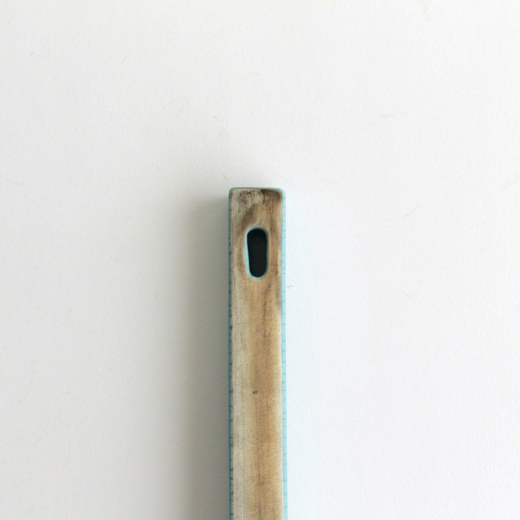 細長い形状で壁にかけて使用する前提で製作されています。場所を取らない上に、ちょっとさみしい壁面等を上手に彩ってくれる素敵な花器です。