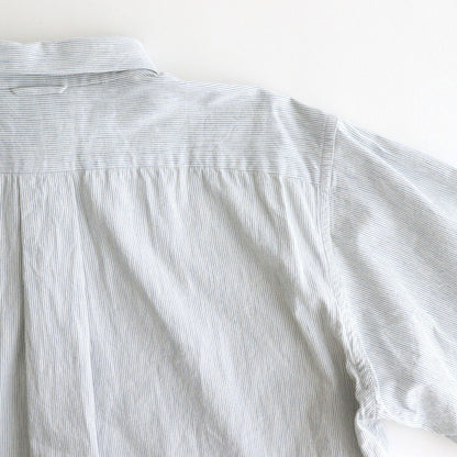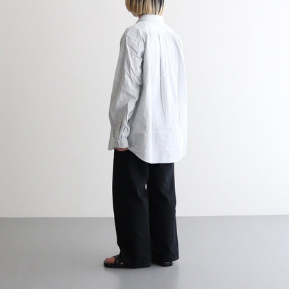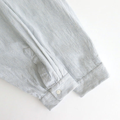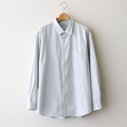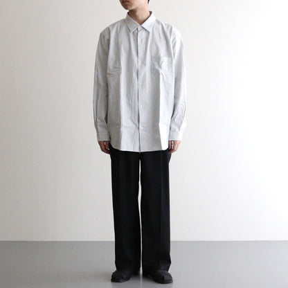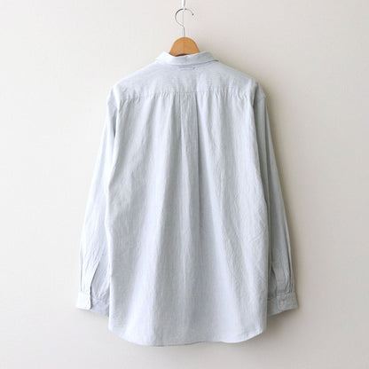 洗いざらしの風合いが心地良いコットン素材の平織生地を使用。一部にヘンプをミックスすることで粗野な風合いとさらっとした風合いに仕上げられています。仕上げに洗いをかけ、ほどよくリラックスした雰囲気に。わずかに透け感がある中肉の生地厚。年中着用可能です。