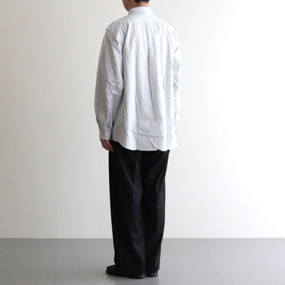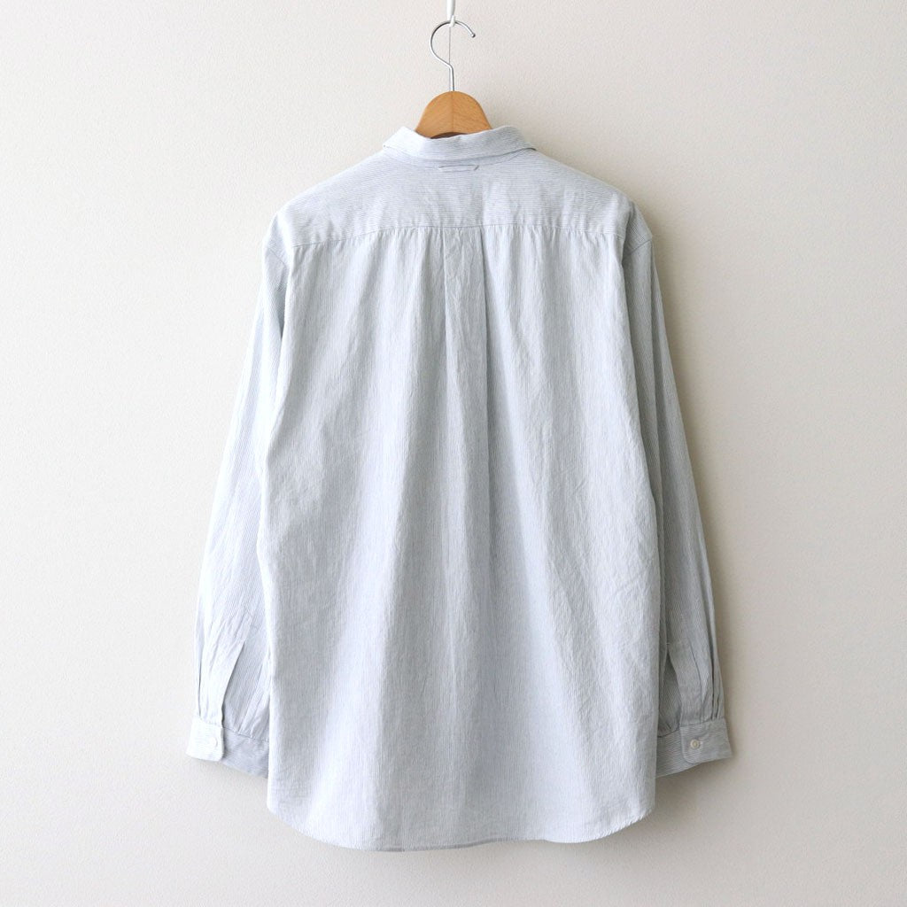身幅や肩周りにゆとりを持たせつつほどよく体にフィットするレギュラーフィットのボタンシャツ。大きすぎず小さすぎないバランスの取れた大きさとなっており、様々な着こなしに取り入れて頂けます。縫製を極力表側に見せないようにしたステッチレス仕立てにすることでミニマルな佇まいに。