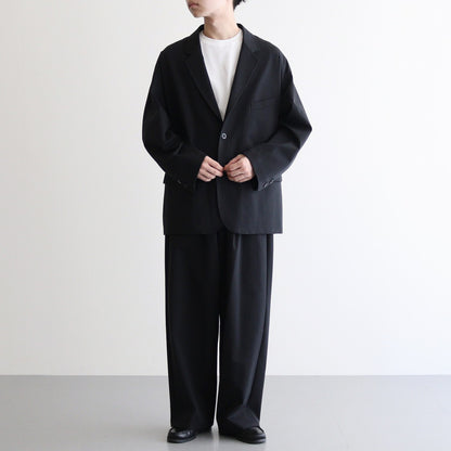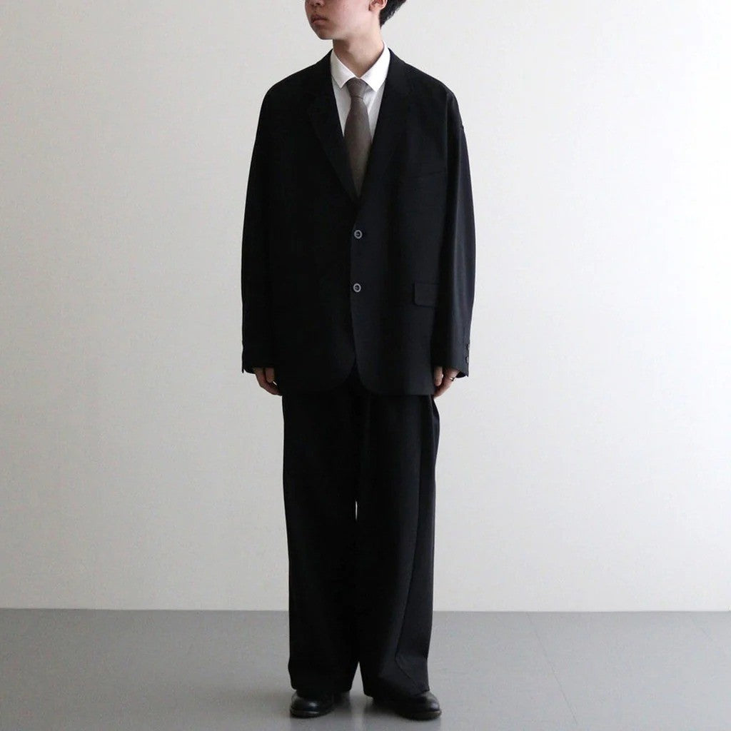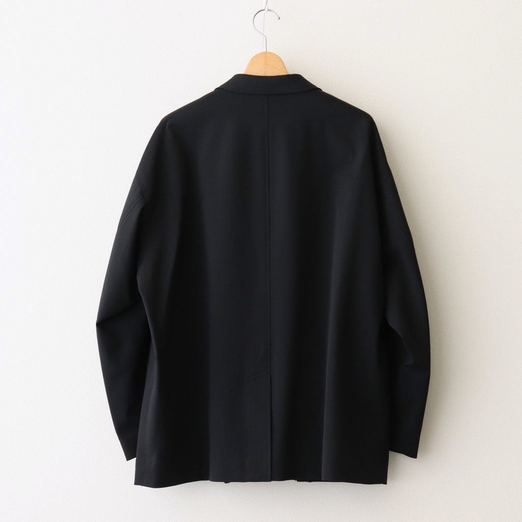 ブランドらしいワイドなドロップショルダーで製作されたテーラードジャケット。生地とシルエットにより着心地も良く動きやすいためアクティブなスーチングスタイルが楽しめる一着です。身頃両サイドにフラップ付きのポケットを設計。左側に胸ポケットと内ポケットも搭載。