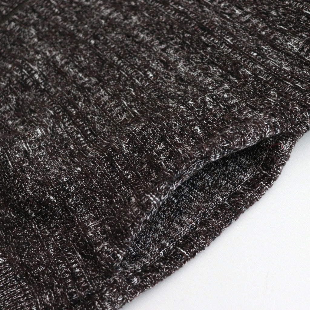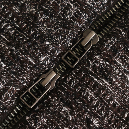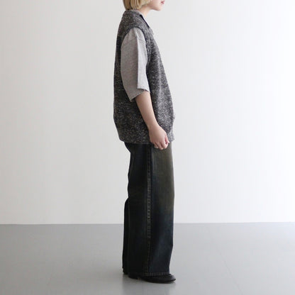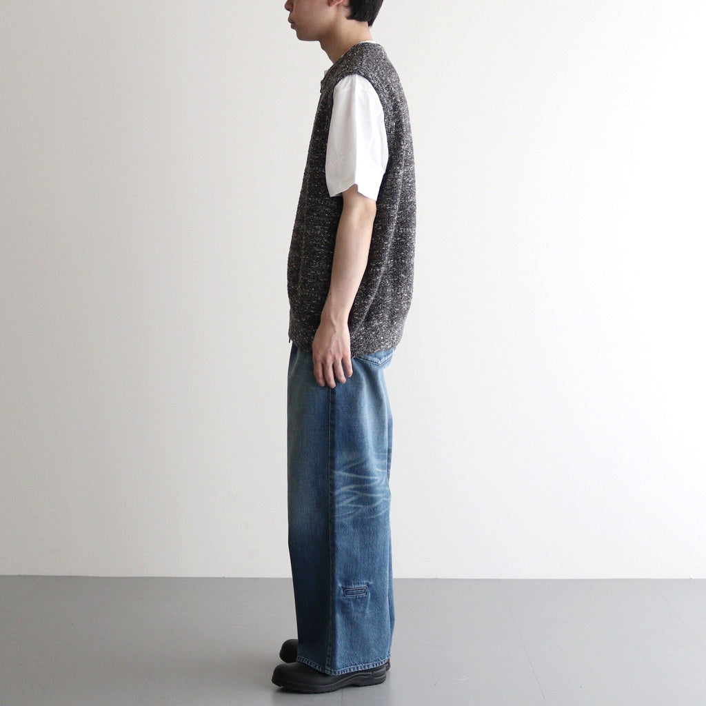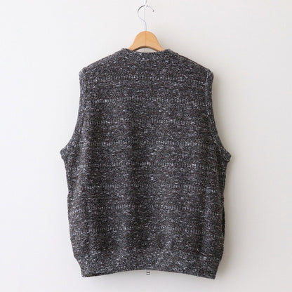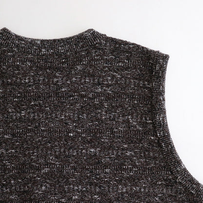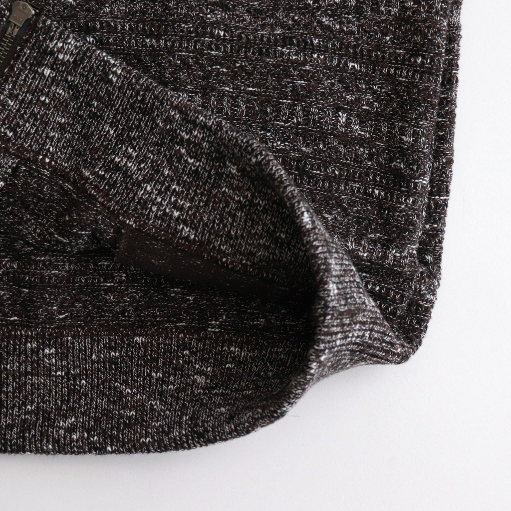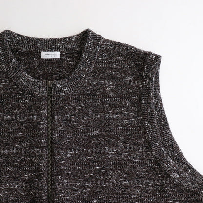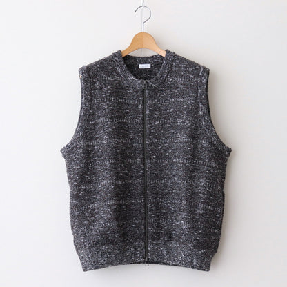 ほどよくゆとりを持たせたリラックスシルエットのニットベスト。前立てをダブルジップにした汎用性の高い一着。襟や裾はリブ編みに切り替えることで補強されています。