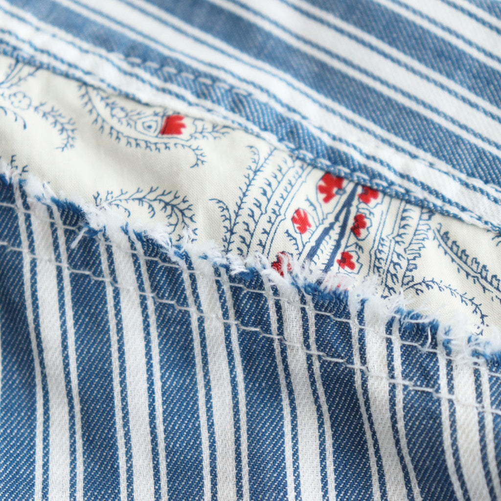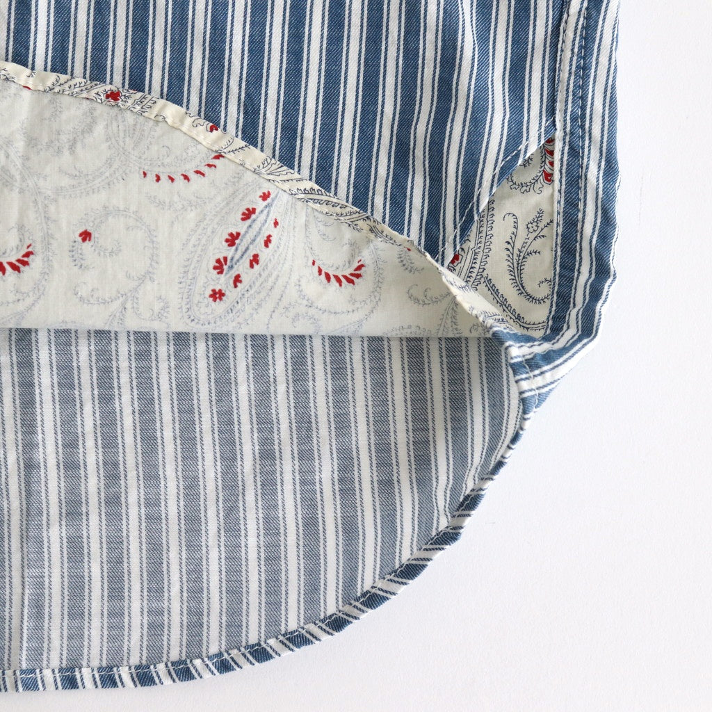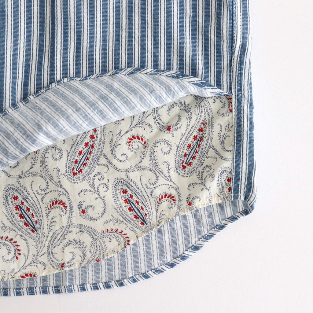 上質なコットン素材を使用したストライプ柄のツイル生地とペイズリー柄のタイプライターを切り替えて使用。身頃に使用されているツイル生地は程良く厚みがありながらふっくらとした柔らかさと軽さを兼ね備えた素材。春夏シーズンにも涼しくご着用いただける風合いです。