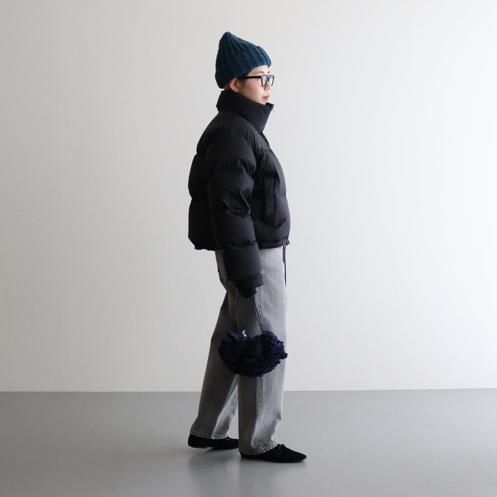 1.5ゲージの片畦編みで製作したニット帽。ざっくりした編地とボリューム感のある大きなシルエットが特徴的。 折り返し部分は約8cm。ウールをベースにアクリルをブレンドしており心地よい風合いながら膨らみと軽さのある仕様に。帽子の裏面にOMESANDGOESのネームタグ付き。