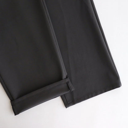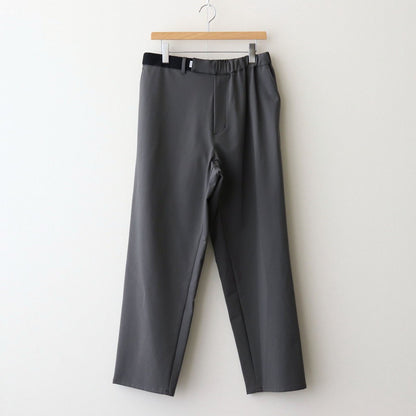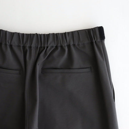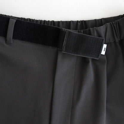 ウエストはベルクロとゴムを使用することでお好みの位置で留められる仕様となっており、自由にフィッティングを変えられる為、どんな体型の方でも綺麗にフィットします。ウエストを広くとっておりアジャスターでギュッと絞ってお好みのシルエット、フィッティングで着用するデザインです。ベルトレスで着用するイージーパンツデザインの為、穿き心地も快適です。