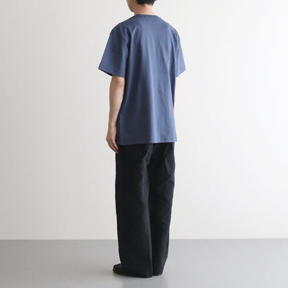 古着のような質感を忠実に再現した無地Tシャツ。素材には独特なネップやムラ感が特徴の落ち綿を使用。旧式の編機でゆっくりと編み立てられた丸胴の吊天竺を採用しています。程よくゆったりとしたオーバーサイズシルエットがスタイルのアクセントに。