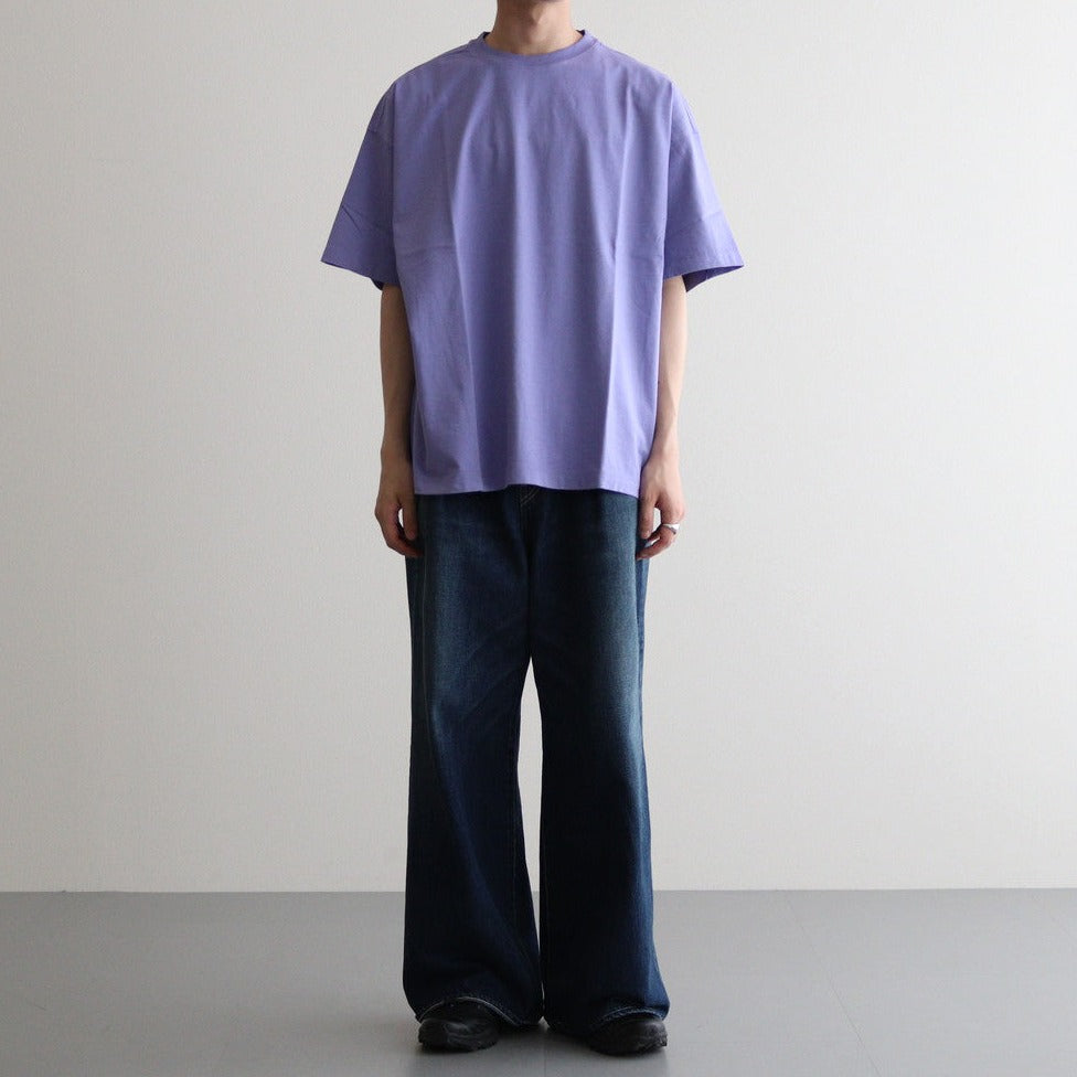 YOKEの新定番である背中のヨーク部分で切り替えが入ったカットソー。両袖からヨークが1枚続きで切り替えになっており、フロントはセットインスリーブ、後ろはドルマンスリーブの特殊なパターンで製作しています。また肩ハギ、袖ぐり、ヨーク切り替え部分は、強度と意匠 性を持たせるために2本針の本縫いを入れてアクセントに。シルエットはほどよくゆったり目のシルエットです。