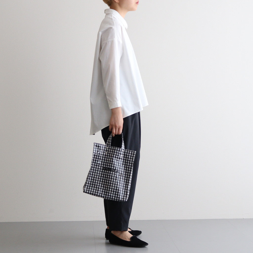 肩周りと身幅にたっぷりとゆとりを持たせたワイドシルエットのプルオーバーシャツ。着丈に前後差をつけ、動きのあるシルエットが女性らしい佇まいを演出します。襟は小さめのデザイン、袖口はシングルカフス仕様。背面中央のシームに沿って配したコンシールファスナーで着脱も容易な仕様に。