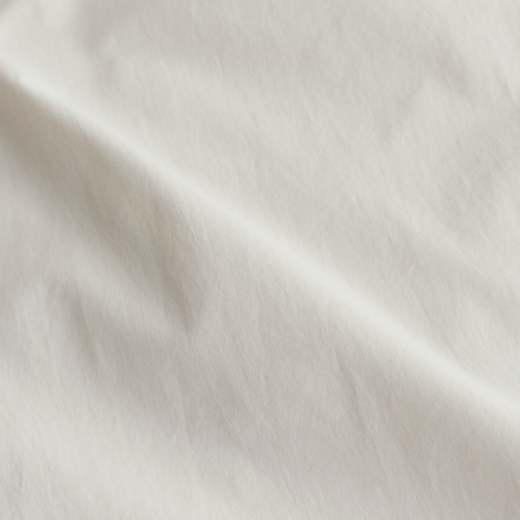 ストレッチ性のあるポリエステル糸を使用した平織りタイプライター生地です。光沢が少なく透けにくい糸を高密で織っているため、淡色でも透けを気にせずご着用いただける生地となります。ストレッチもよく効いているため、着心地も快適。速乾機能もありとても扱いやすい生地です。