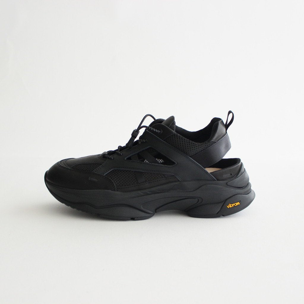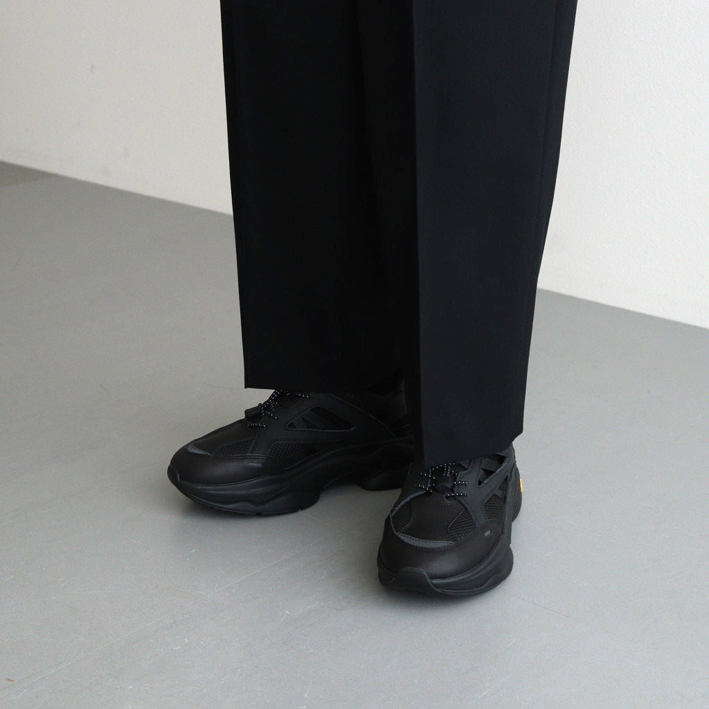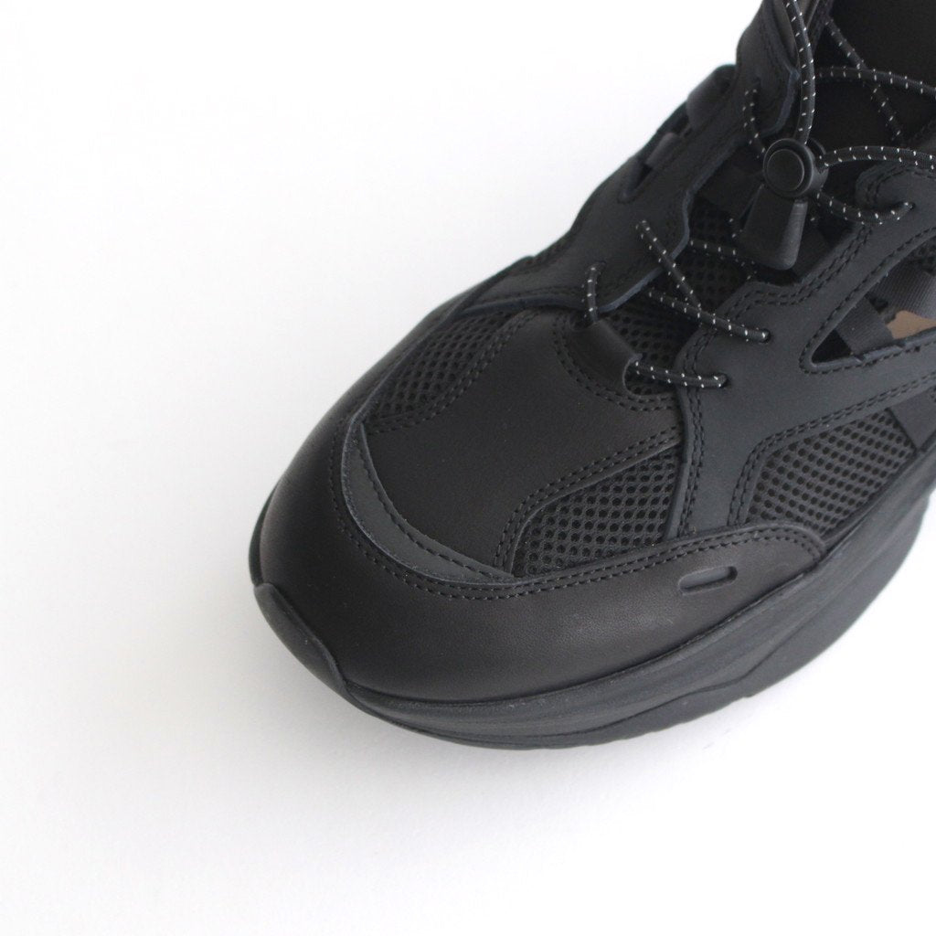 適度にくり抜かれたパーツとWラッセルメッシュでベンチレーション機能が高く、スニーカーならではの柔らかいホールド感を実現しています。インソールに植物タンニン鞣しされた厚み3mmのレザーを採用。足の形に近い形状を作ることによりフットベッドのような履き心地が特徴です。レザーインソールは、汗を吸い取る吸水性と適度に発散する放湿性を兼ね備えており、快適な履き心地を実現。さらに、リフレクターストレッチレース仕様となっているため、着脱もサンダルのように容易に行う事ができます。