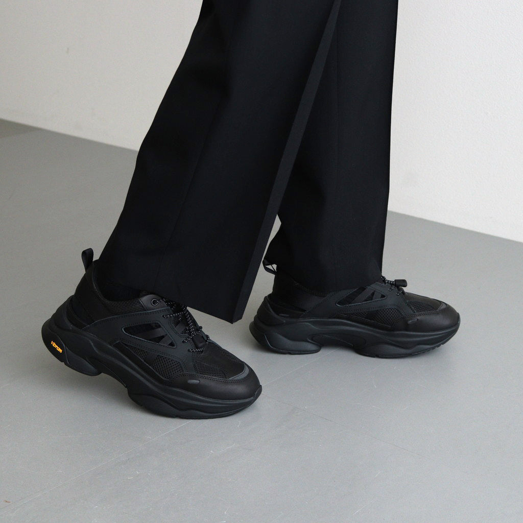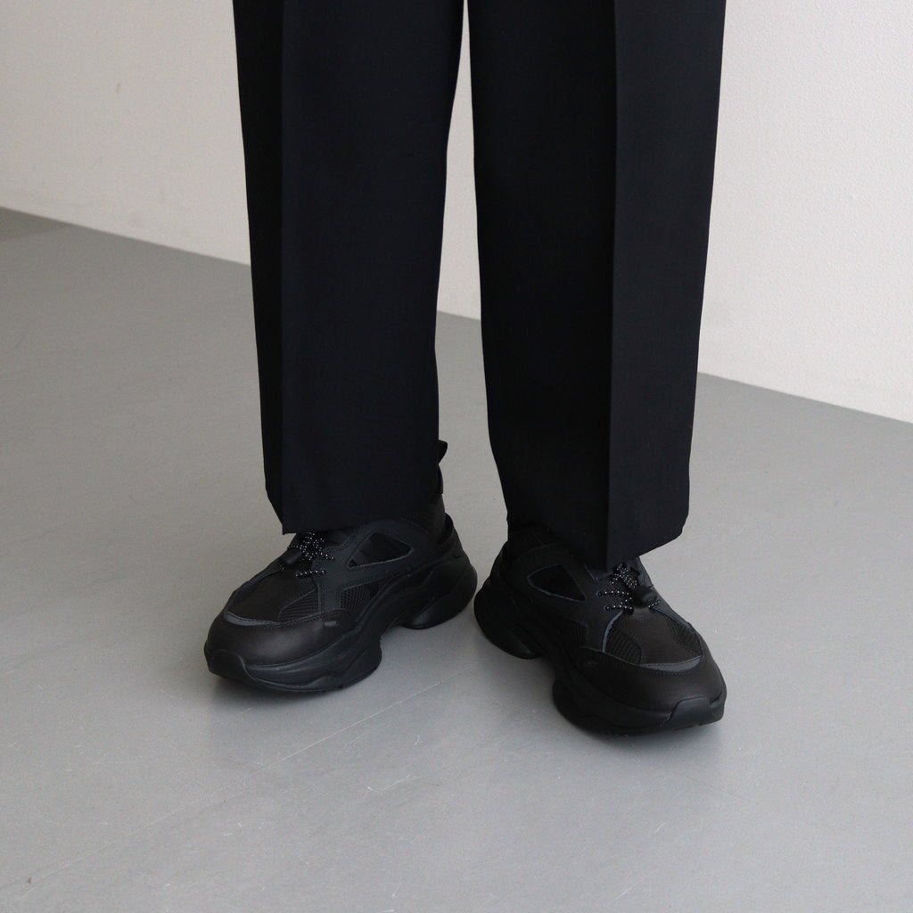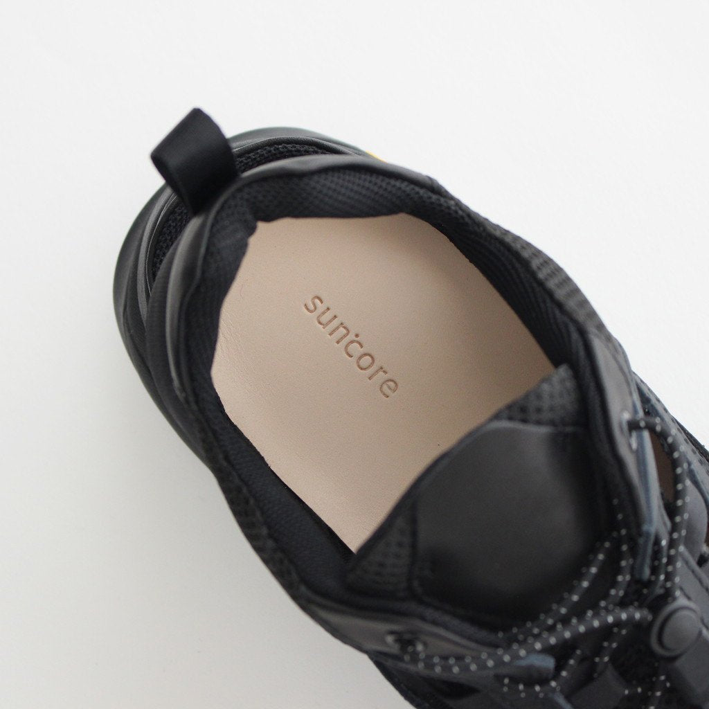 適度にくり抜かれたパーツとWラッセルメッシュでベンチレーション機能が高く、スニーカーならではの柔らかいホールド感を実現しています。インソールに植物タンニン鞣しされた厚み3mmのレザーを採用。足の形に近い形状を作ることによりフットベッドのような履き心地が特徴です。レザーインソールは、汗を吸い取る吸水性と適度に発散する放湿性を兼ね備えており、快適な履き心地を実現。さらに、リフレクターストレッチレース仕様となっているため、着脱もサンダルのように容易に行う事ができます。