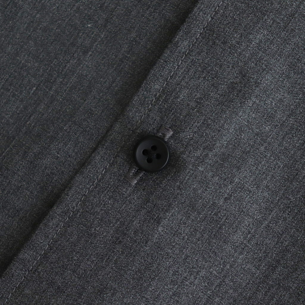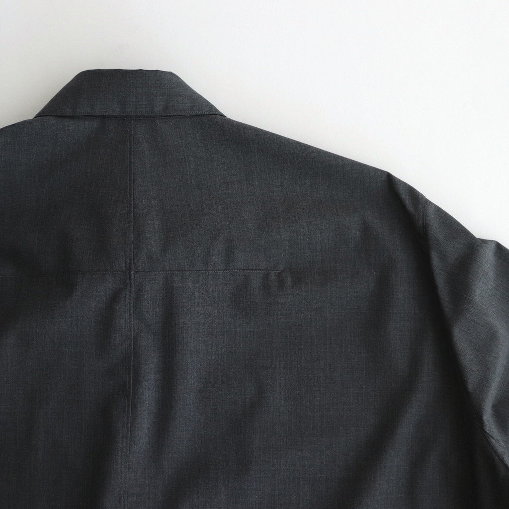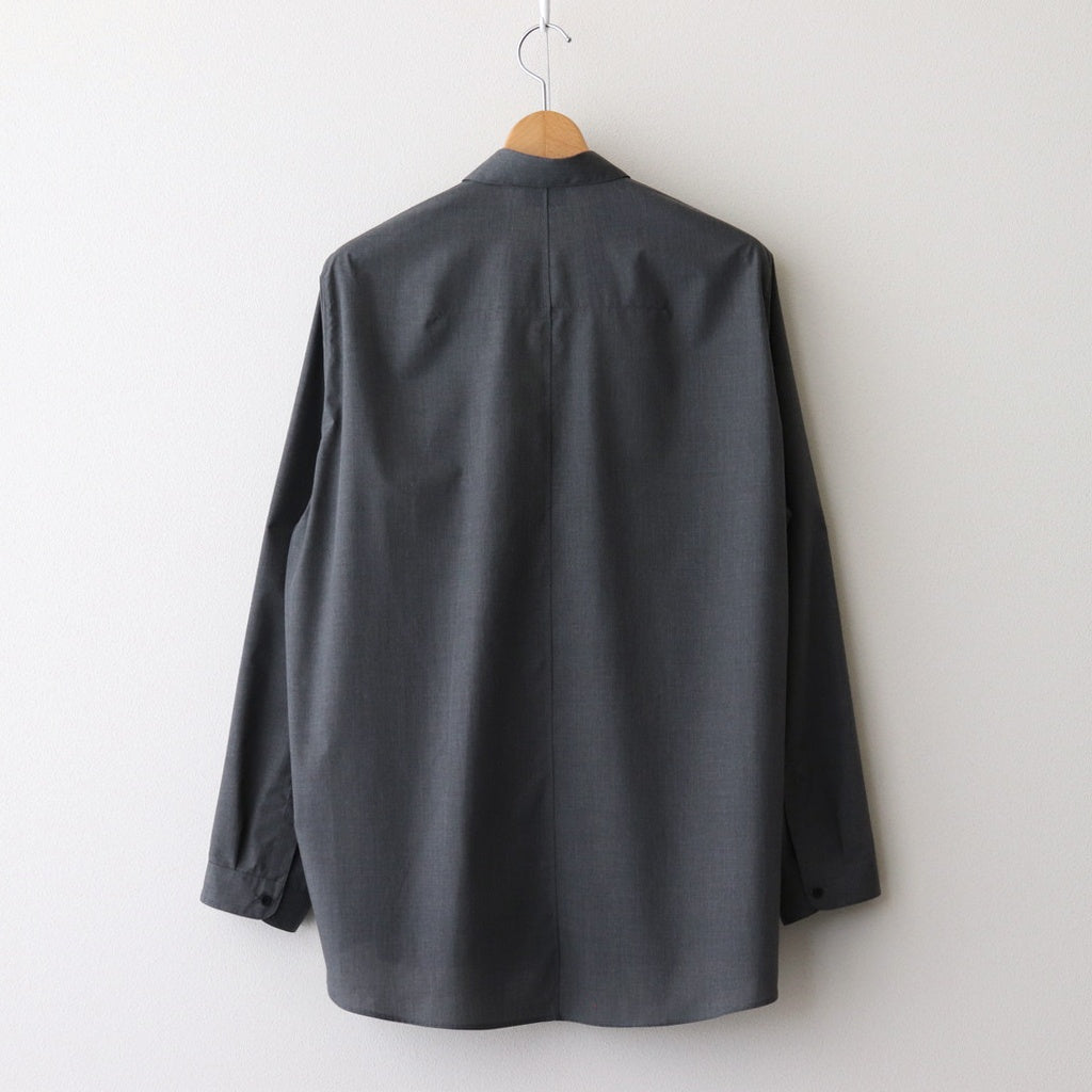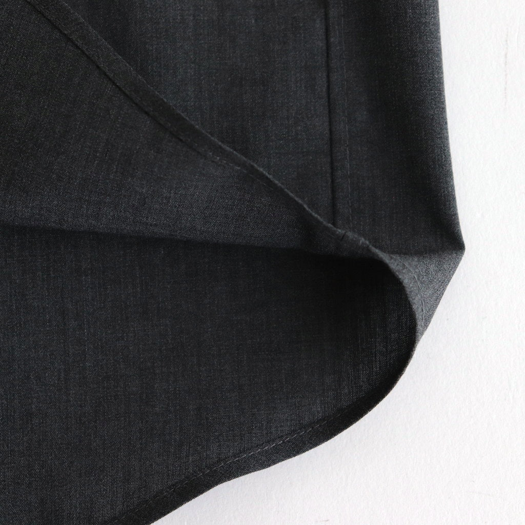 肩幅・身幅を比較的コンパクトなサイズ感で製作されたレギュラーカラーシャツ。襟は主張の少ない小さめな台襟仕様。袖付けはセットインスリーブ。裾はラウンドカットで着丈に前後差をつけたデザインです。