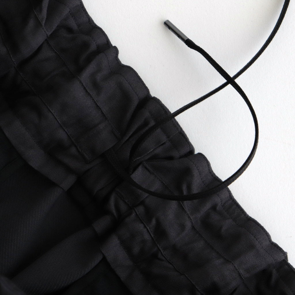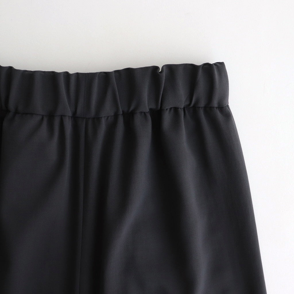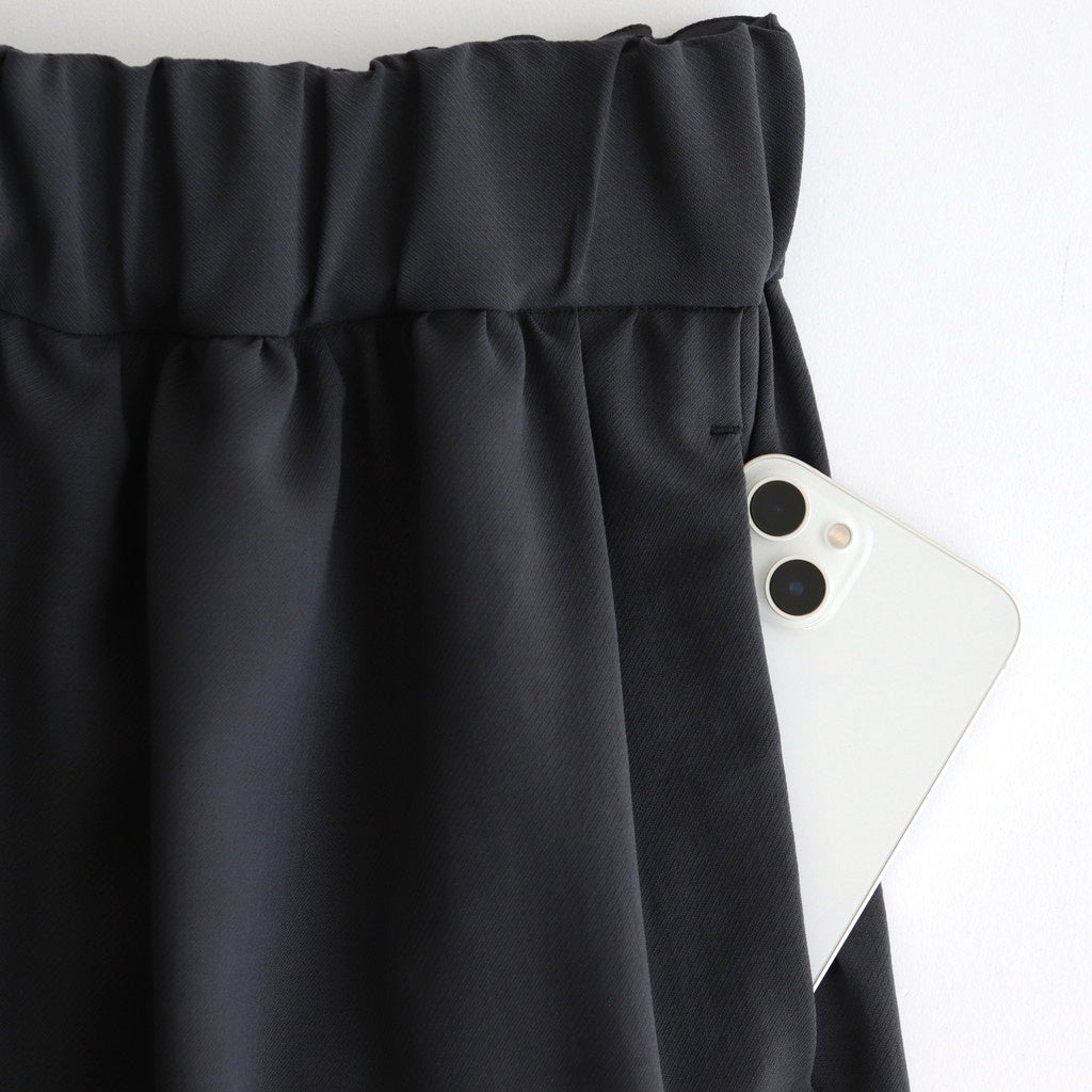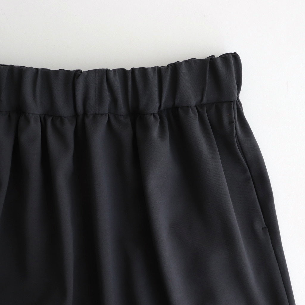 腰回りにギャザーを作ることでゆとりを持たせたストレートなシルエットのイージースカート。ウエストはゴムとドローコードが通っており細かくフィット感の調整が可能。ウエストの両サイドに目立たないポケットが設計されています。バックにベンツを作ることで可動域と歩きやすさを確保。裏地はなく春夏シーズンにもさらっと着用することが可能な一着です。